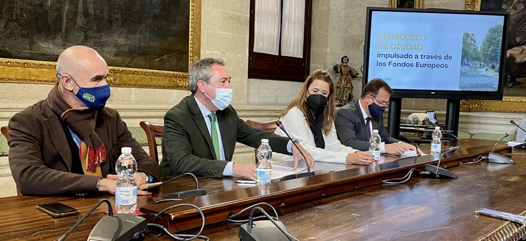 “Desde el año 2015 hemos venido trabajando en la definición de una estrategia, el diseño de proyectos y una coordinación interna que nos ha permitido desarrollar proyectos con fondos europeos por un importe superior a los 300 millones de euros en la ciudad. Este aval nos permite ahora contar con una bolsa de proyectos y una experiencia en la tramitación para aprovechar al máximo todas las oportunidades que se nos presentan para acceder a fondos europeos de recuperación Next Generation con los objetivos claros de contribuir a la reactivación económica, avanzar hacia un modelo de ciudad sostenible y comprometido en la lucha contra el cambio climático y apostar por la innovación y la modernización”, explica el alcalde de Sevilla, Juan Espadas, quien ha explicado los avances en el proceso de captación de fondos europeos y desarrollo del modelo de movilidad sostenible acompañado por la delegada de Hacienda y Administración Pública, Sonia Gaya; el delegado de Hábitat Urbano, Turismo y Cultura, Antonio Muñoz, el delegado de Gobernación y Fiestas Mayores, Juan Carlos Cabrera, y los equipos de las áreas de Movilidad, gestión de fondos europeos, empresas municipales y planificación estratégica.