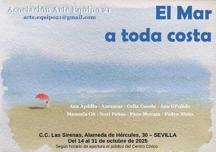 EXPOSICIÓN COLECTIVA “EL MAR A TODA COSTA” https://www.labienal.com/centros-civicos/las-sirenas/eventos/exposicion-el-mar-a-toda-costa EXPOSICIÓN COLECTIVA “EL MAR A TODA COSTA” 2025-10-14T00:00:00+02:00 2025-10-25T23:59:59+02:00 Más información... Ver todo CC Las Sirenas Detalles del evento Qué Centro Cívico Las Sirenas Cuándo 14/10/2025 a 25/10/2025 Dónde CC Las Sirenas Agregar evento al calendario iCal Acciones de documento Imprimir Enviar Compartir Compartir en facebook Compartir en twitter Compartir en linkedin Compartir en whatsapp