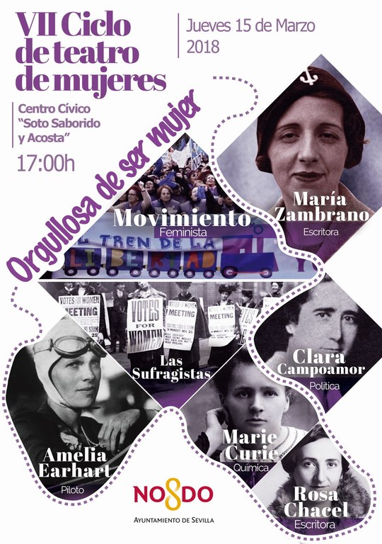 Este año 2018 se celebra el “VII CICLO DE TEATRO DE MUJERES” que forma parte de los actos organizados por el Ayuntamiento de Sevilla, a través del Servicio de la Mujer, Dirección General de Igualdad y Cooperación de la Delegación de Igualdad, Juventud y Relaciones con la Comunidad Universitaria, conmemorativos del 8 de Marzo, que como sabéis representa años de lucha en defensa de la Igualdad de Derechos entre mujeres y hombres.