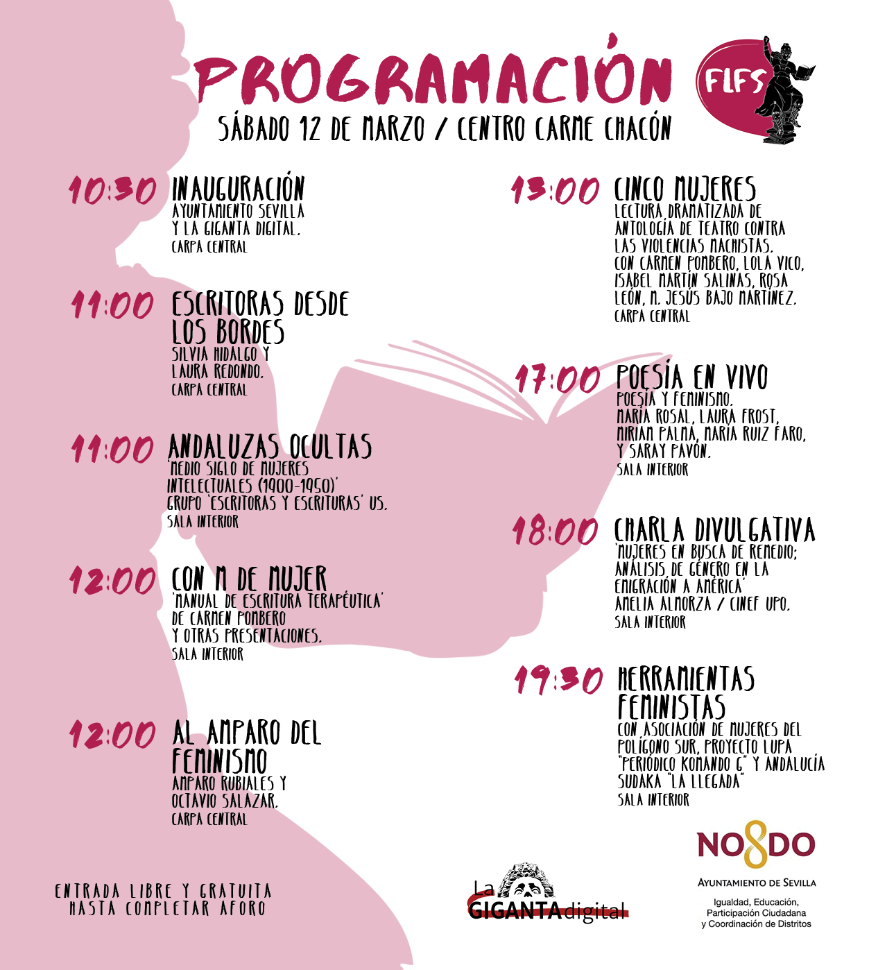 Esta I Feria del Libro Feminista de Sevilla (F.L.F.S.) está organizada por LA GIGANTA DIGITAL "La palabra como arma de Igualdad". Tal y como se definen estas profesionales del periodismo digital: "Somos Feministas. Contribuir al objetivo de la igualdad real –de manera local pero con ambición universal–, denunciar las injusticias y visibilizar lo que hacemos las mujeres, es lo que nos mueve.